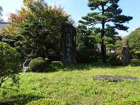 | 本多公園北側の石垣は遺構だろうか。 | 本多公園にある山崎城本丸跡の碑。 |