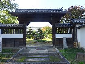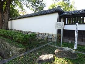 | 本多公園に残る陣屋の現存門。 | 門に続く白壁。 |