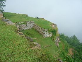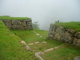 | 北千畳の枡形。城の周囲は霧に覆われている。 | その上にもさらに一段の枡形がある。 |