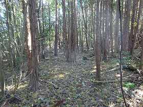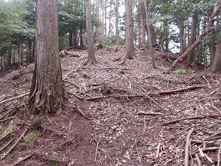 一番上りやすいのは南端近くの大堀切のあたりからであろう。こちら側からなら、イバラはなく、比較的歩きやすい。大堀切もしっかりと視認することができる。