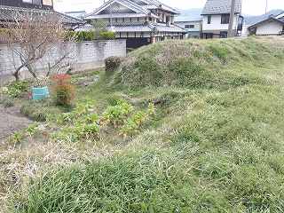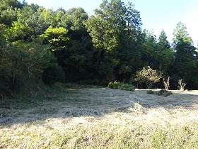 | 腰曲輪に見られる虎口。 | 少林寺下の畑。この辺りから取りつくのが分かりやすいかもしれない。 |