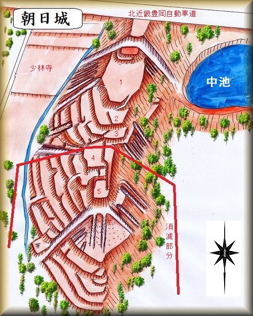 近年では、朝日城は単なる在地領主の居城ではなく、黒井城攻撃の際に明智軍によって改修された付城であったのではないかと言われている。そのため、在地領主とは一線を画する構造を有しているといったところであろうか。