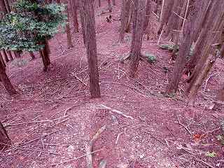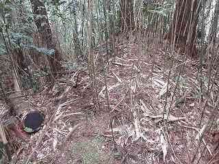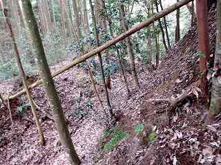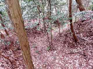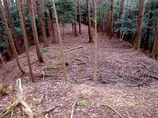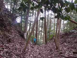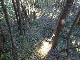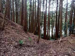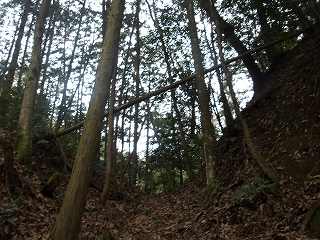 | 1郭南側の大堀切。深さ10m近くある。 | 横堀。 |