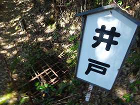 そちらを進んでいくと、左側に大きな竪堀が掘られているところに井戸の表示があった。ちゃんと石組みで組まれた井戸である。このような山中に井戸があるというのも意外だが、井戸がなければ籠城戦には堪えられない。岩の多い山というのが意外に水源に豊富だったりするものだが、この山にも水源が存在しているのであろう。