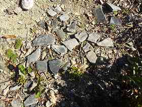 | 二ノ丸南側の石垣。 | 西の丸には瓦がたくさん散乱していた。 |