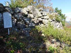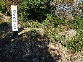 そこからは尾根伝いに登っていくのだが、これがまた、けっこう歩きにくい山道であった。というのも、この山はわりと岩が多いらしく、道にも岩が露出していて、ゴツゴツとしているのである。さらに岩場が多いためか、登城道付近には木があまり生えておらず、直射日光にさらされながら登っていかなければならないのである。太陽に照らされながらの登山だと、11月でもけっこう暑い。これが真夏だったら、熱射病に注意しなければならないほどである。
