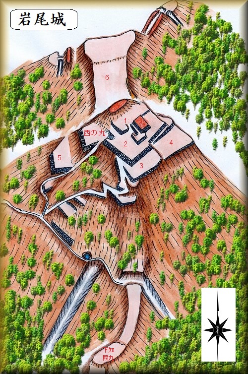 岩尾城は、石垣を多用し織豊期の城郭らしさを今に残している城郭である。しかし、郭の面積そのものは小さく、拠点的城郭というよりは、砦的な構造物であったように思われ、城主の勢力はそれほど大きなものではなかったのだろうと想像される。それなのに天守まで存在していたとは意外な構造である。建造物があったころにはどのような威容を誇っていたものであろうか。いろいろと想像を膨らませてみたくなる城郭であると言っていい。