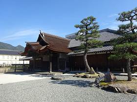 | 奥御殿。これも現存である。 | 奥御殿内部。明治の頃には小学校として使われていたという。 |