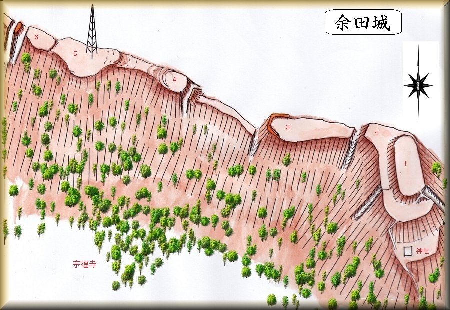 | 宗福寺の背後の山稜が余田城。 | 4郭。 |