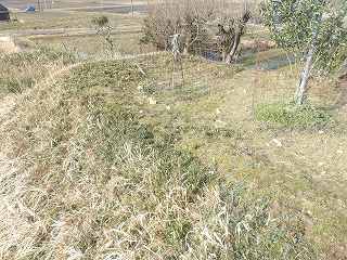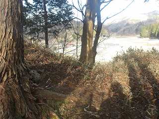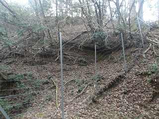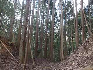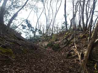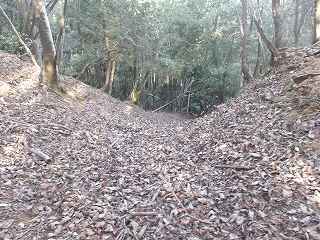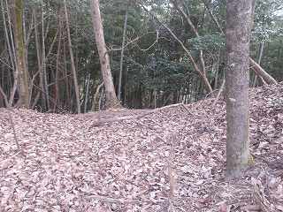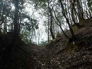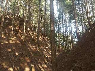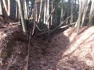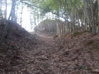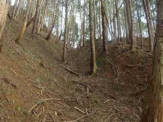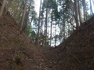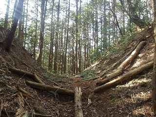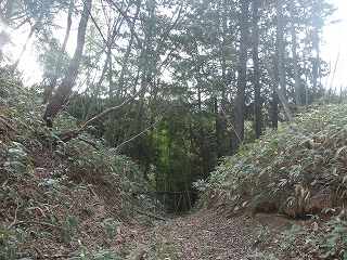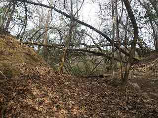 | 1郭高土塁。 | 大堀切。二重になっているのが分かる。 |