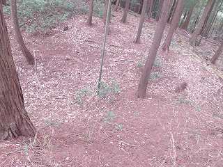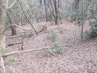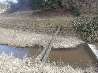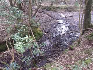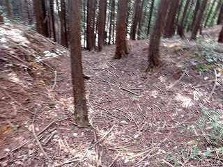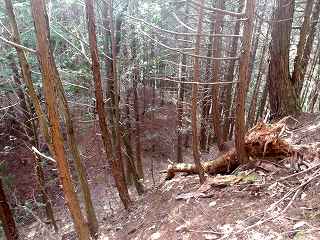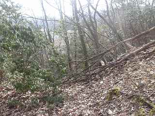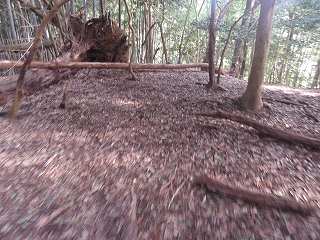 | 北側の丸木橋。これを渡っていく勇気がありますか? | 側面部は重機でたくさんの林道が付けられている。 |