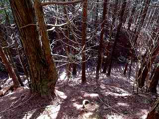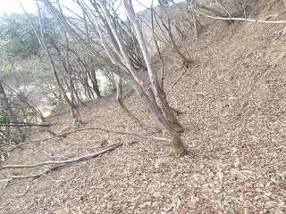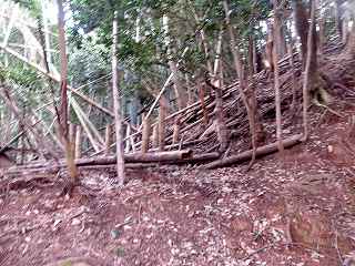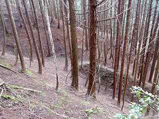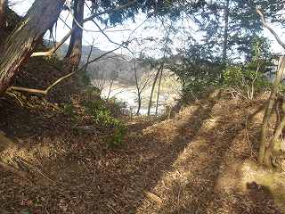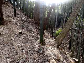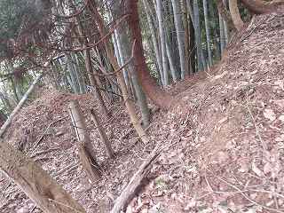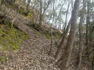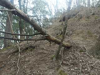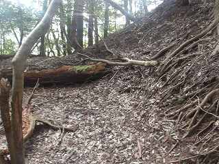 薮がなくて見通しがよいのはいいことなのだが、そのため鋭い斜面を昇り降りするのがとても難しい城でもある。ヤブも役に立つことがあるんだなあ。