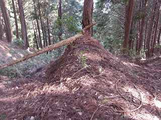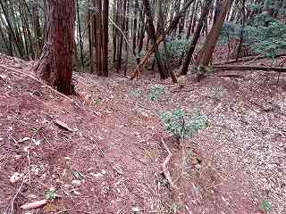 堀切の先にもさらに堀切はあり、二重堀切を形成して尾根続きを分断していたようである。念の入った構造となっている。