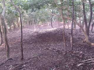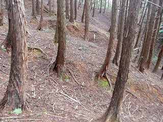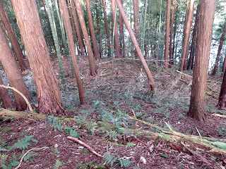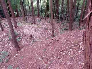 神社のある1郭の南側下には2郭がある。そして2郭から南側の山稜には多数の郭群が造成されている。しかし、いずれも削平は甘いものであるようだ。