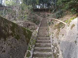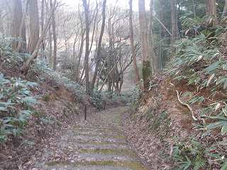 参道は切通しの通路になっている。けっこう険しい道であるが、急峻な山容であり、これがなかったら上まで登ることはとてもかなわないであろう。