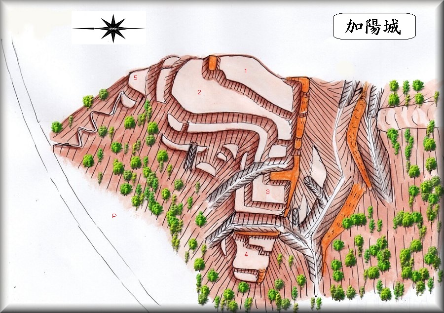 加陽城は、山名氏の家臣であった加陽氏の居城だったのではないかと推測されている。