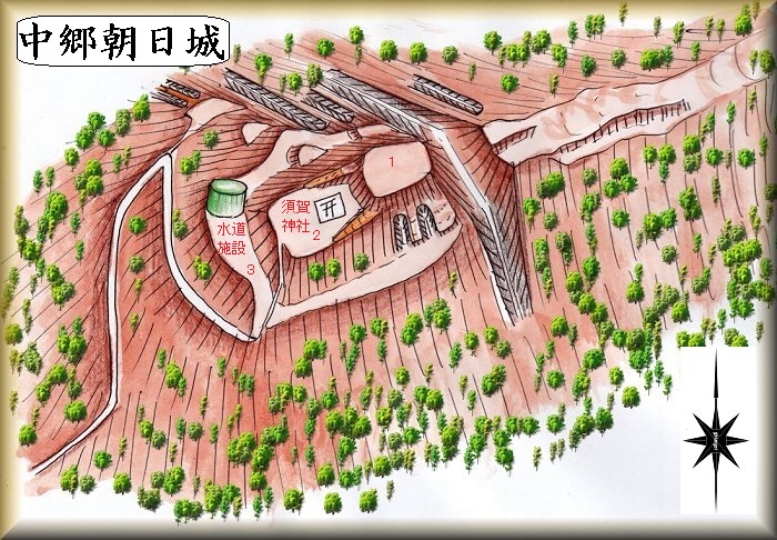 豊岡市中郷にある須賀神社が中郷朝日城の跡である。