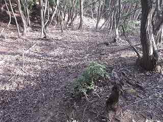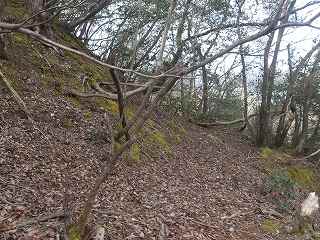 城に登って行く道はなく、テキトーに取り付いて行くしかないのだが、わりとヤブの少ない山なので、どこから取り付いても城域のどこかの部分にすぐに到達できると思う。