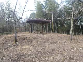 堀切を越えたところが1郭である。1郭は城内最大の郭であり、南北70mほどある。中央部に土壇があって、そこに東屋が建てられていた。これは櫓台の跡なのであろうか。