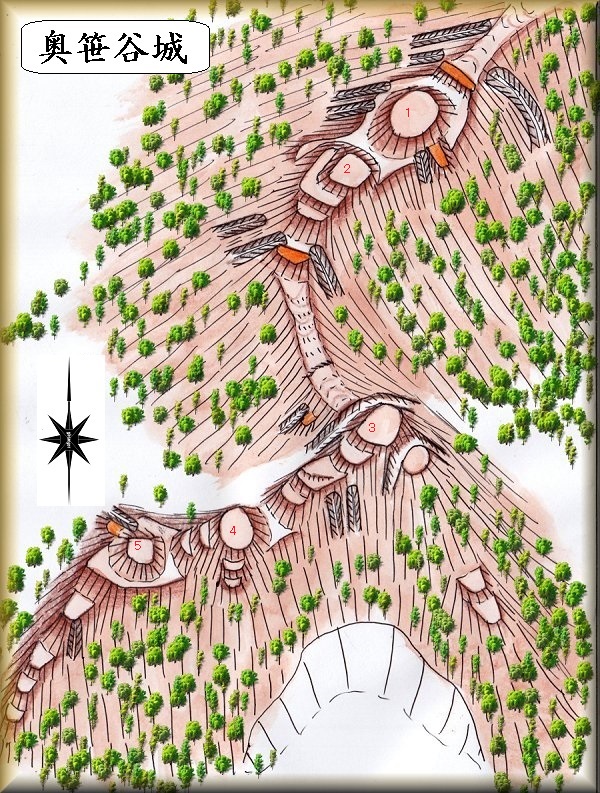 今回、残念ながら上まで登ってみる時間がなかった。鳥瞰図は上記の書の図に基づいて作成してみたものである。