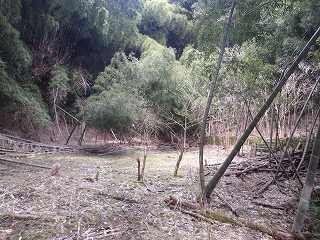 | 東側から。 | 神社跡のある谷戸部。テキトーによじ登って行くしかない。 |