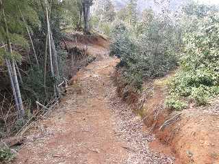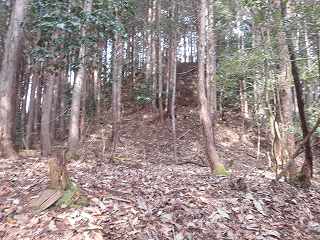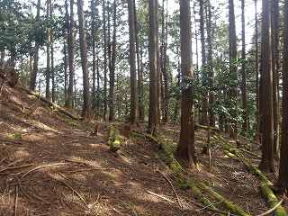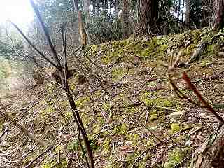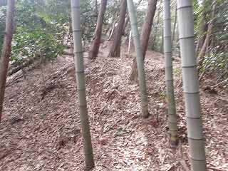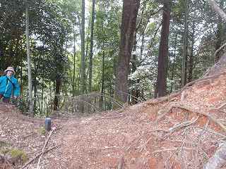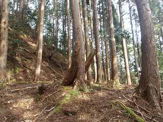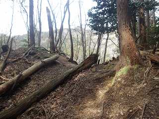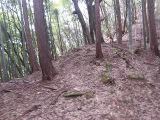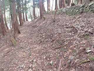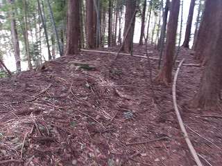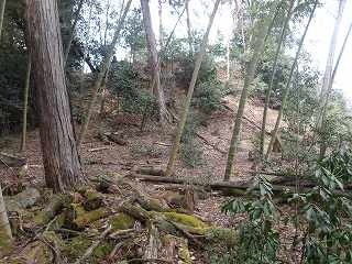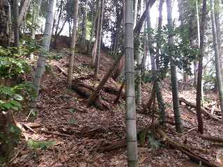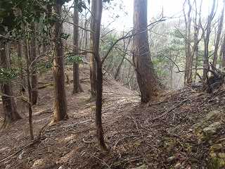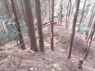 そこからは尾根続きに南西側に登って行く。途中にテラス状の郭がいくつか造成され、途中の守りとなっている。