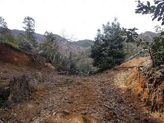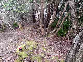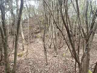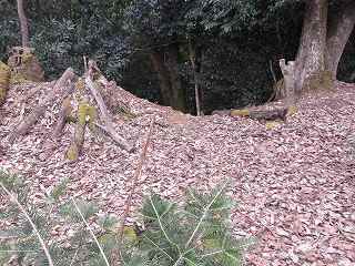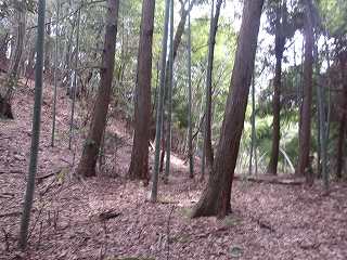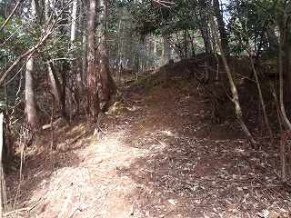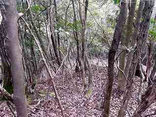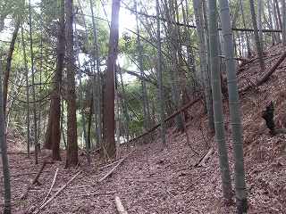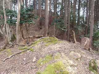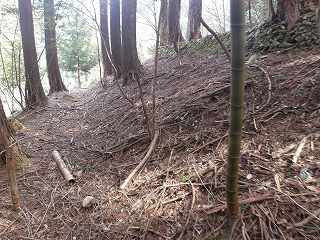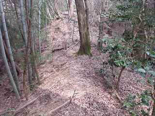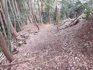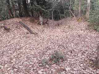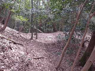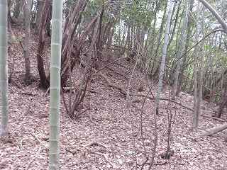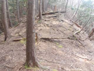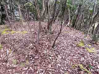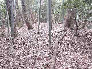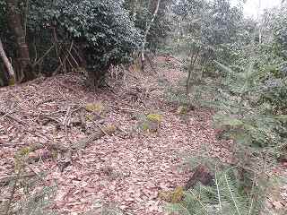 その先の南側の尾根との間には堀切が掘られているが、小規模なものである。