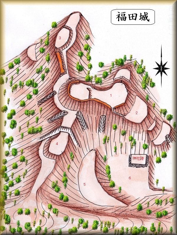 福田城は遺構はそこそこよく残っているが、登城道がなく登るのに苦労する城郭である。