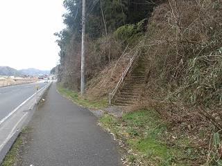 城内には八幡神社が祭られており、その参道入口が県道沿いに付けられている。この参道からアクセスするのが簡単である。
