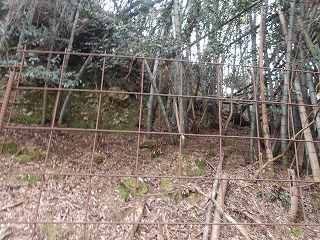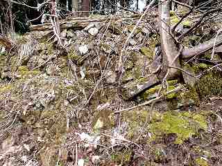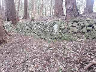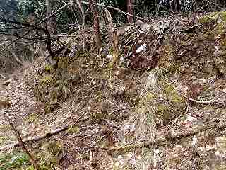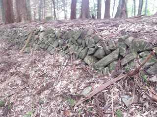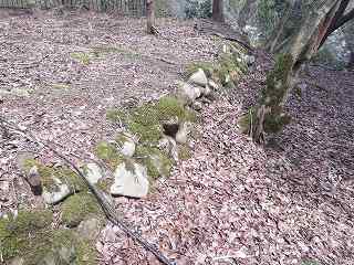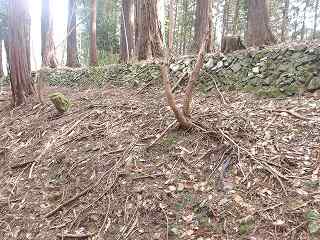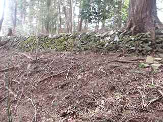 1郭との間には低い段差しかなく、そこには石積みが見られた。低い石積みではあったが城郭遺構と見てよいものである。