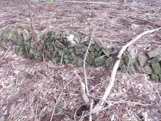 そのお宅の背後から山に入って行けそうな道が見えたので、そこから入り込んで行くと、6の谷戸内部のような場所に出た。この北側には石積みで囲まれた一角があった。どうも神社の跡のように見える場所である。