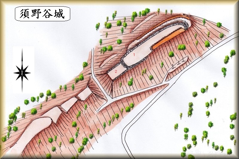 須野谷城の城主等、歴史については未詳であるが、石垣などがしっかりと構築されており、恒久的城郭として築かれたものであったと思われる。