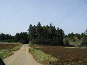 大形東田土塁は、県道231号線の「布佐橋」というバス停の南300m、八幡神社の東南150mほどの所にあったらしい。「お散歩団」によると、サーストン牧場入口付近から西側に入った所で、わずかに土塁が見られるという。
