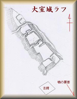 大室城は、「土浦レイクサイドニュータウン」の造成によってその遺構のあらかたを失ってしまった。そのため発掘調査が行われ、報告書も出ている。その報告書の図を基にして大まかに描いてみると、だいたいこんな感じである。