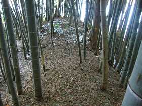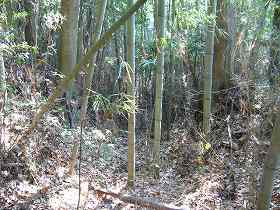 タケノコ掘りをしている地元の方に伺ったが、「ここは寺院であり、館だなんて聞いたことがない」と、うさんくさそうに言われてしまった。私がタケノコ泥棒にでも見えたのであろうか。デジカメと図面を持ってタケノコ取りに来る者もあるまいに・・・・・。
