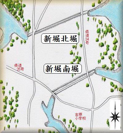 新堀の南堀は、吉原小学校の北西400mほどの所にある。ファミリーマートのすぐ東北裏である。