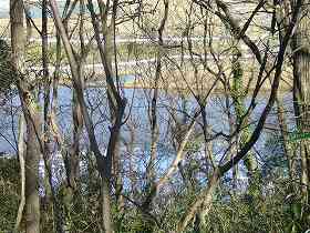 この堀のすぐ南側まで谷津が入り組んできており、ちょうどこの日の頃、谷津には水がたたえられており、いかにも堀の続きという感じであった。このように街道閉塞用の土塁は、谷津と谷津との間をつなぐように造られているのが多いそうだ。戦国土塁の1つの立地条件と言うべきか。