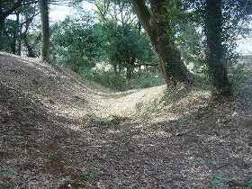 | 南側土塁。 | 西側は削られてオーバーハングしている。 |