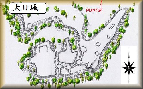*大日城はすでに隠滅してしまったので、参考までに『東町史』に掲載されている図を基にしてラフを描いて紹介しておく。