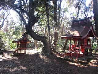 神社は沼沢地に望む比高15mほどの台地の東南端にあり、東側に山稜上までの参道が付けられている。