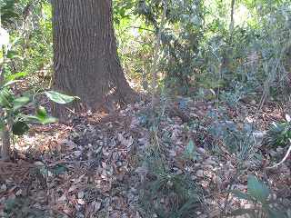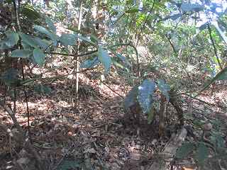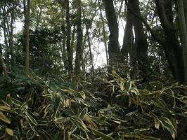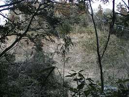 | 9の郭の東側下の堀切らしきもの。深さ2m未満でかなり浅い。 | 8の郭の上にある塚なのだが、草が多くてうまく映らない。 |