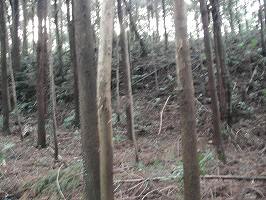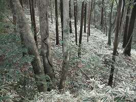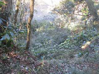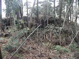 | 2の郭下の西側は幅20mほどの谷津になっているが、これも斜面は削崖されたものである。 | 2の郭西側下の堀底面も、その南側は切岸整形されている。 |
