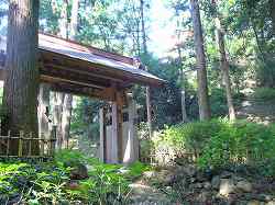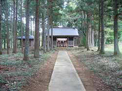 | (以前の記述)和田城は、県道160号線の「下の内入口」と言うバス停の南側、真弓神社がある所にあった。「大子広域公園」のすぐ南側の台地である。この神社の入口は城塁状になっている。写真は石段の脇の様子だが、いかにも城址のような雰囲気となっている。しかし、それ以外には遺構らしきものは見えない。神社の背後がさらに高くなっているのでその上に遺構があるかと思われるが、未確認。 真弓神社というのは変わった名前であるが、山門があると言う点でも、こういう神社としては珍しいといえる。山門の両脇には弓を持った武士像が置かれている。これが、真弓神社の由来と何かも関係があるのであろう。 真弓神社の下には道路をはさんで向かい側の平地に八溝神社があるが、これもまた変わっている。鳥居がとても立派なのだが、横に建っており、おまけに本殿はそれと分からないほど小さな祠にしか過ぎないのであった。 |