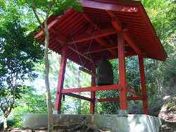 | 角の一段高い所にある金搗き堂。山中に響く鐘の音はなかなか心地よいものである。 | 先ほどの堀切状の部分から月居山頂へ。すぐに2段の削平地が見えてくる。 |