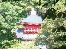 | 1郭を南側から見たところ。北側部分の2段構造がなんとなく分かる。 | 月居山に上る途中から見える月居観音堂。山下からでもこの建物だけはよく見える。 |