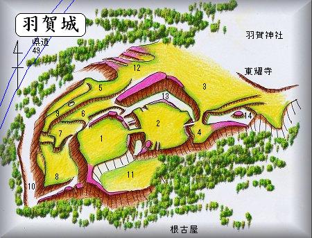 羽賀城の城主は、江戸崎土岐氏の重臣であった臼田氏である。臼田氏は臼田文書を残しており、これによって、戦国期の土岐氏の動静を垣間見ることができる。天正18年の臼田文書によって、江戸崎城が神野角助によって接収された様子も分かるのである。