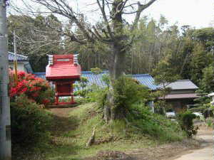 | (以前の記述)椎塚城は、県道103号線沿いの徳昌寺の東南250m、山陽工業という工場のすぐ東南辺りにあったらしい。「茨城県遺跡地図」を頼りに、探してみたのだが、遺構らしきものは見当たらなかった。写真の左側のお宅は1,5mほどの土壇の上にあるが、あるいはこれのことか? 地元の複数の方に伺ったが、みな城など聞いたことがないと言われてしまった。歴史等も未詳でよく分からない。 | |