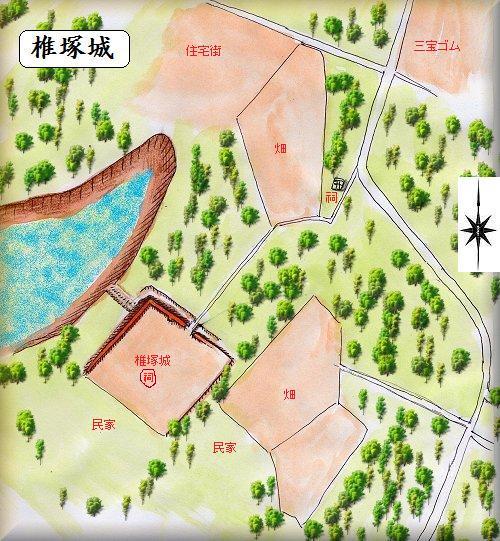 椎塚城は、方100mほどの単郭の城館であるが、その場所が非常に分かりにくい。かつて何度も探しに来ていたが、そのたびに探し当てられず、がっくりと帰ってきていた。