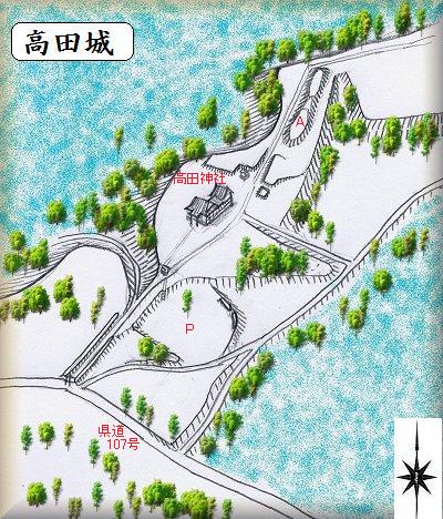 *この城址は高田神社神主さんのお宅の敷地内になっています。ここを見学なさりたい方は、かならずこのお宅の許可を得てからにしてください。