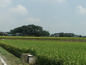 ここは比高6mほど周囲の水田面よりも高くなっている。宅地化が進んでいるため、遺構ははっきりしないが、「堀之内」の地名から、中世の土豪層の居館が置かれていたものであろう。台地の北側下には水路が通っているが、これが堀の名残である可能性もある。まあ、これに限らず、一段低いところにある水田はみな堀跡のようにみえなくもない。